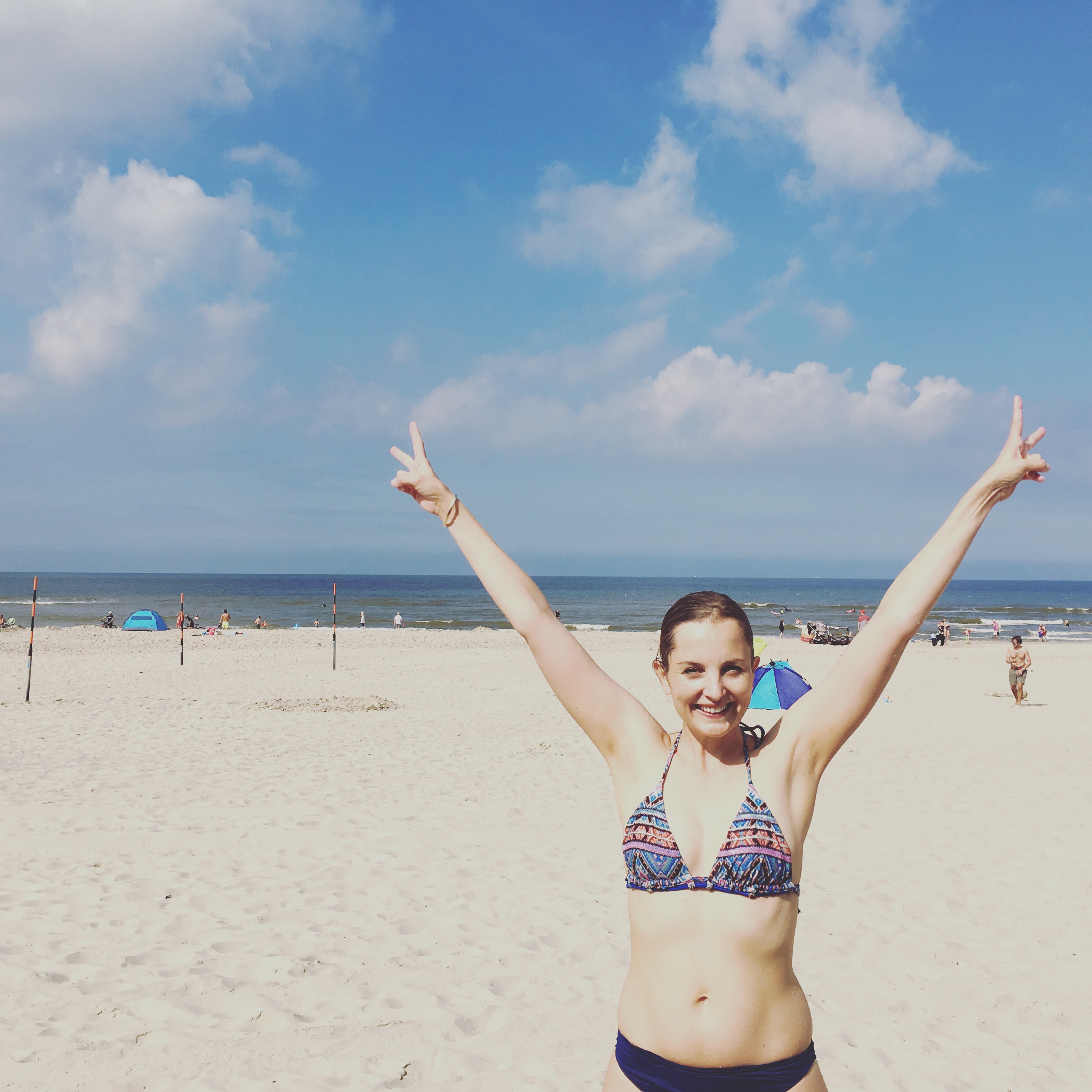 Ich liebe dieses Nordseewetter. Gerade nach diesem Rekordhitzesommer, kam uns eine „kühle“ Brise von 20 Grad im August gerade recht. Und trotz bewölktem Himmel, konnten wir in das 19 Grad warme Meer schwimmen gehen. Kaum blickte die Sonne raus, ist auch schon gleich Bikiniwetter. Und für die kühlen Stunden am Tag haben die Holländer DIE Lösung: „het strandpaviljoen“. In diesen Restaurants direkt am Strand kann man herrlich windgeschützt direkt am Meer sitzen. Egal ob „Koffie Verkeerd“ (Milchkaffee), „Pannekoek“ (Pfannkuchen), „Bitterballen“ (mit Ragout gefüllte Krokettbällchen) oder frischer Fisch – hier findet man immer etwas Leckeres. Und niemand schaut einen schief an, wenn man mit einem Kaffee laaange vor Ort ist und in Ruhe liest oder einfach aufs Meer schaut und die Gedanken schweifen lässt.