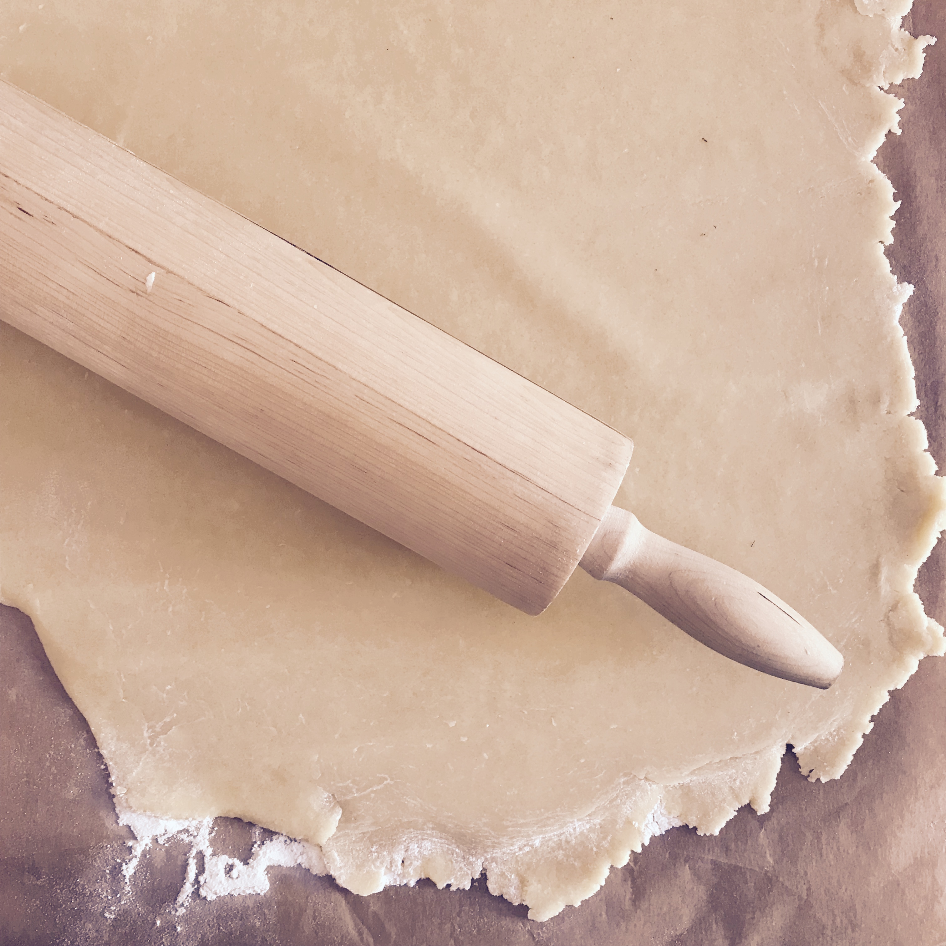 - Mein Trick: ich rolle den Keksteig mittlerweile immer direkt auf einem Backpapier aus! Denn nichts ist schlimmer, wenn sich die schön geformten Kekse beim Rübersetzen in krüppelige Teiglinge verformen. Warum hat das unsere Mutter damals nicht gemacht? Die hätte sich so manches Drama früher erspart! Daher nehmt ihr ein 1/4 des Teiges, und rollt ihn auf ein zuvor bemehltes Backpapier dünn aus. Mit dünn meine ich 2-3 Millimeter. Dann werden die Kekse schön knusprig. Nach dem Ausstechen (mit einem 9cm-Kreis-Ausstecher) nehmt ihr einfach nur den restlichen Teig weg und legt das Papier samt Kekse auf ein Backblech.