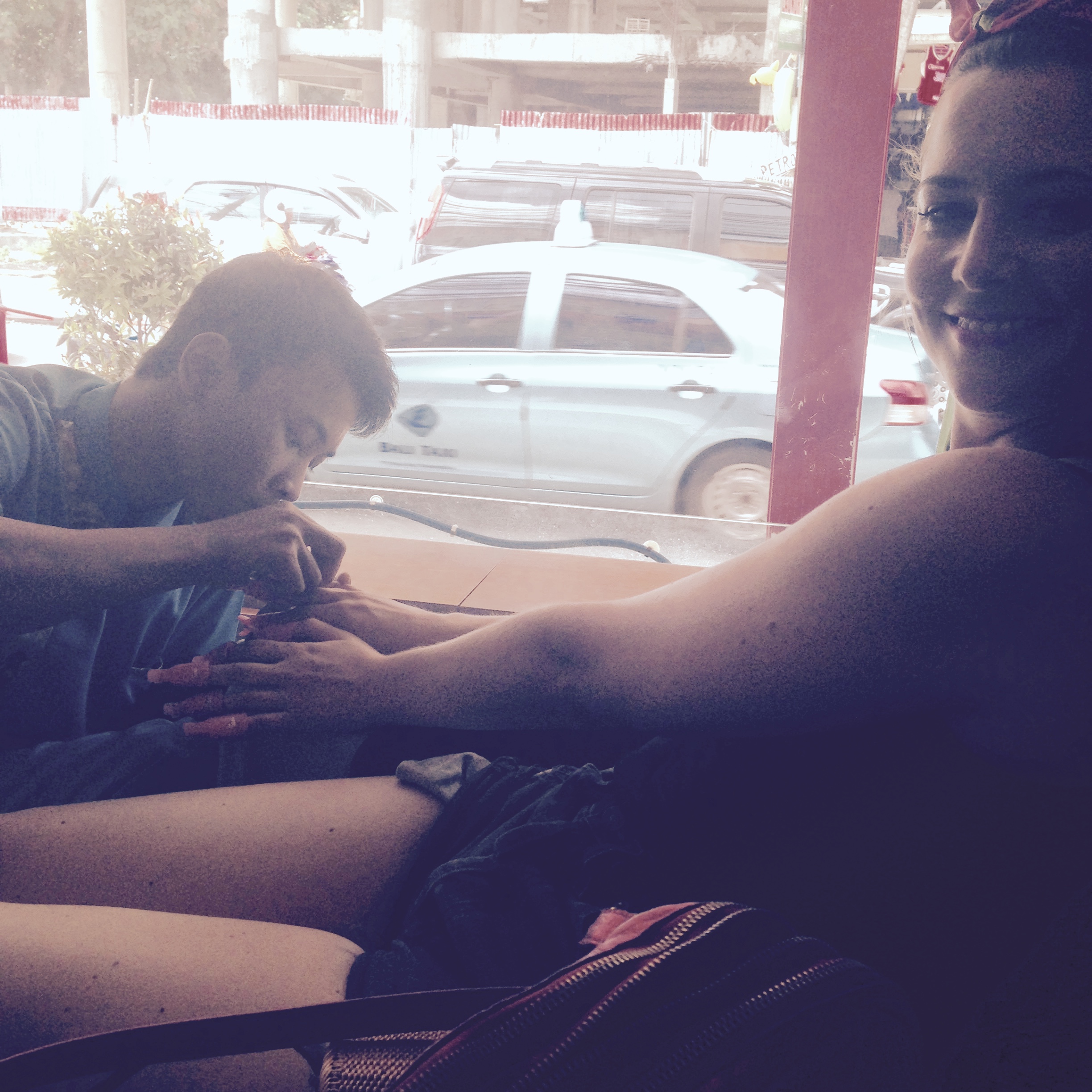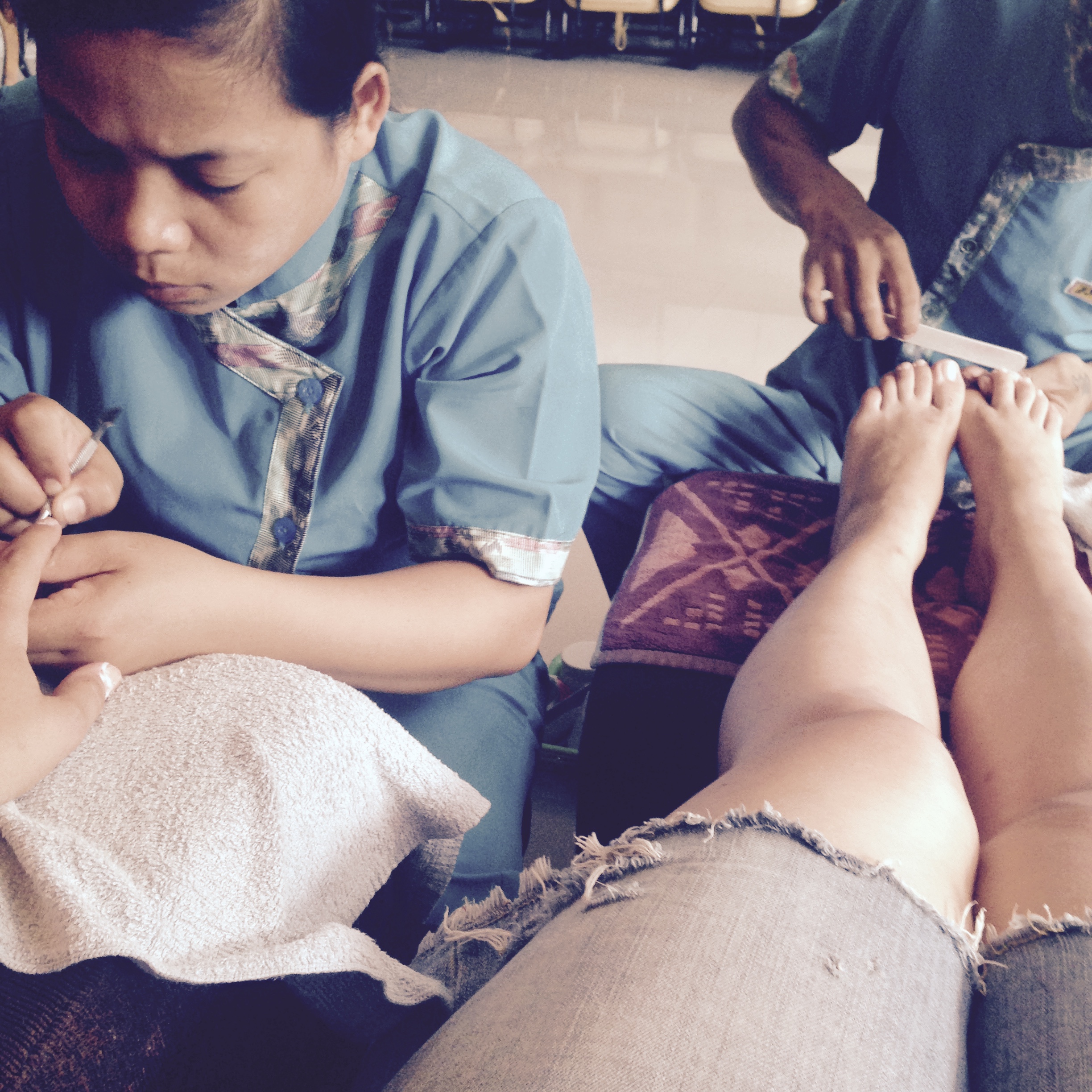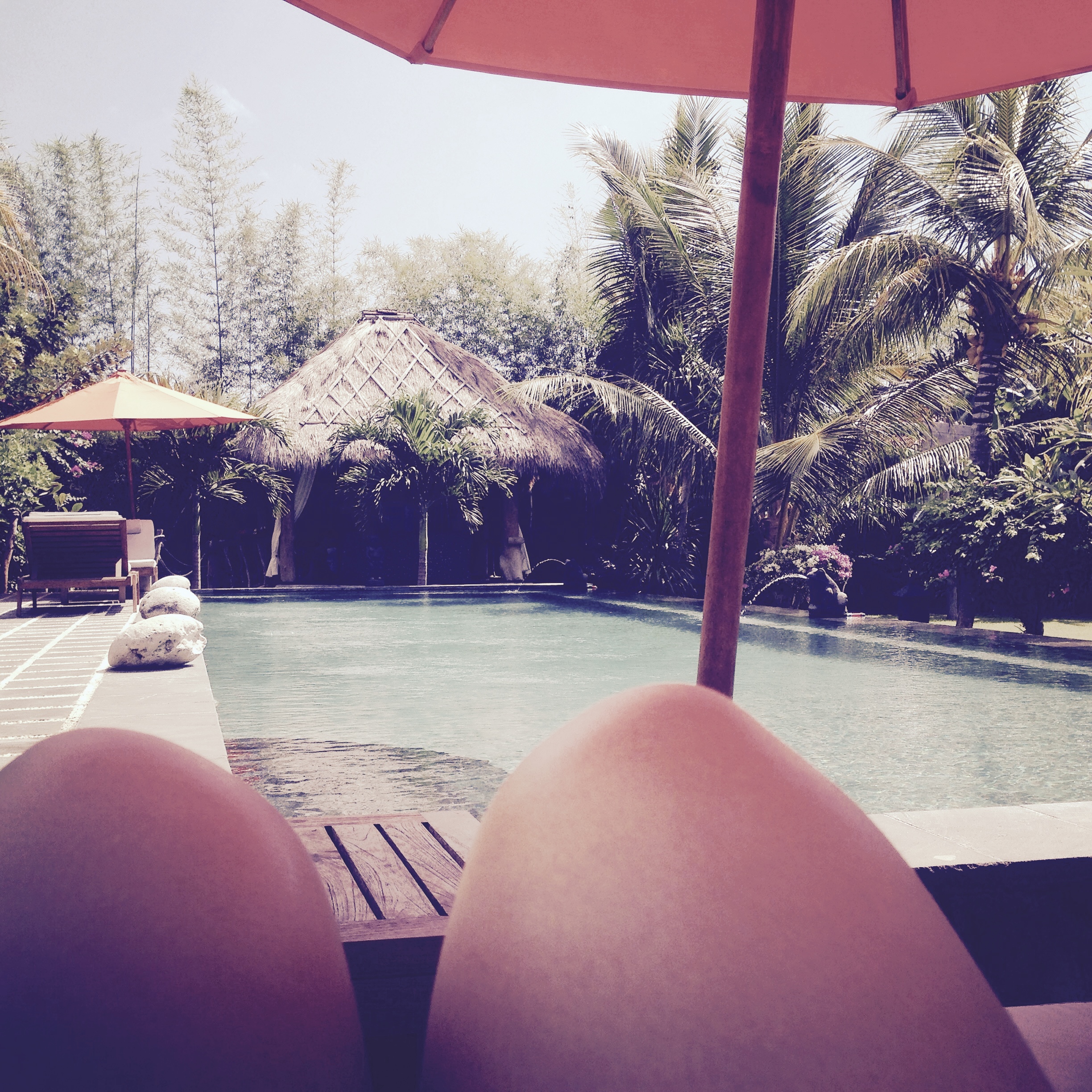 Bali ist bekannt für Orte, an denen man auch zur Ruhe kommen kann. Balinesische Massagen findet man auch auf immer mehr Spa-Menüs in Deutschland. Es ist eine Kombi aus Streichungen, wenig Dehnungen, und Kneten. Das ganze mit Öl. Da der Währungs-Kurs für Deutsche echt gut steht, kann man sich eh gehen lassen, wie im Wellness-Schlaraffenland. Das haben wir dann auch getan: Massagen, Pedi- und Maniküre. Am Ende sind wir so durchgedreht, dass wir uns tatsächlich Wimpern haben kleben lassen. Allerdings sah ich danach aus wie eine Mischung aus Transvestit und Jennifer Lopez.