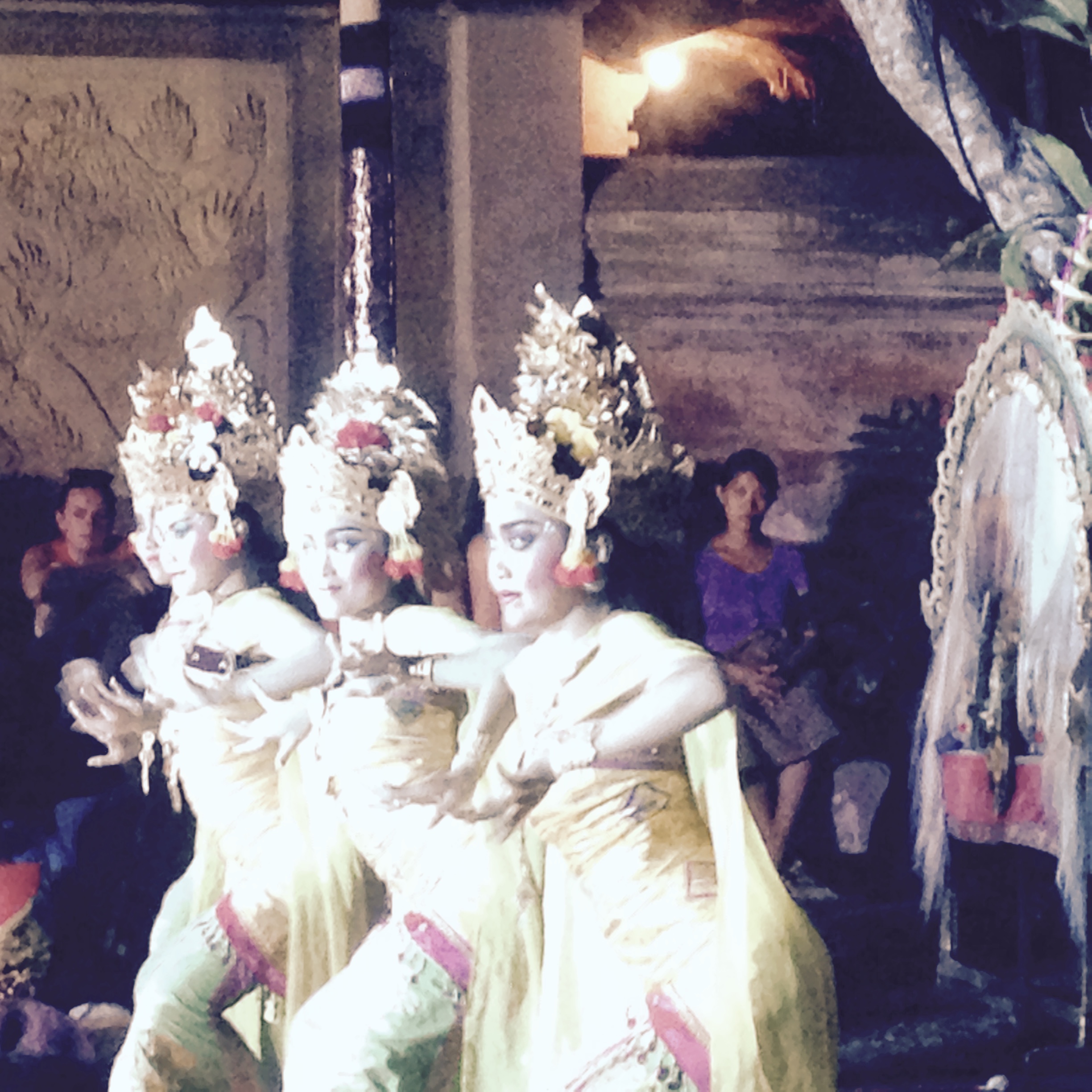 Die Stadt Ubud gilt auf der Insel als künstlerische Hochburg. Und wer mal auf Bali war, sollte sich einen traditionellen Tempeltanz anschauen, den sogenannten „Legong“. Von der Erzählung haben wir zwar nix verstanden – die pompösen Kostüme, die Atmosphäre und das exotische Spiel von Mimik und Gestik der Tänzer war aber schon beeindruckend. Sie reißen die Augen ganz weit auf und verdrehen die Finger. Gewöhnungsbedürftig – aber ein Erlebnis welches ich nicht missen möchte.