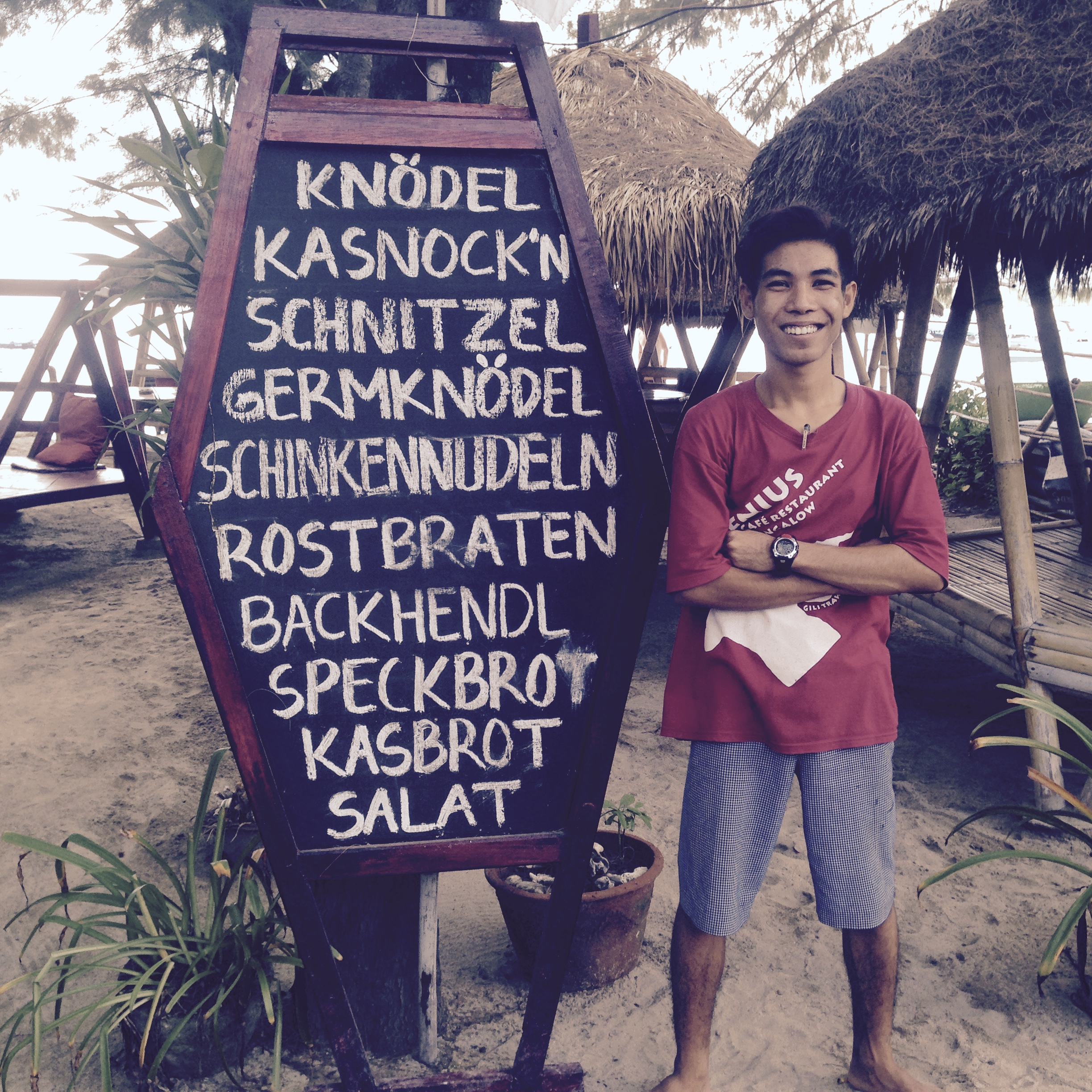 Noch nie was von Gili Trawangan gehört? Dann lest mal diesen lustigen Vice-Artikel. Kurze Inhaltsangabe: die Partyinsel ist bekannt wegen der Magic Mushroom Milchshakes – also für abgefahrene Tripps aufgrund der halluzinogene Pilze. Wir waren dort – allerdings während des Ramadans. Keine Party, keine Pilze. Für uns ein Segen, glaub ich. So oder so war schon viel los – Himmel, wenn es dann dreifach so viele Leute wären – und die dann auch noch high. OMG! Wir wollten Erholung und keine verballerten Leute um uns herum. Aber irgendwie… irgendwie…. siehe letztes Foto.