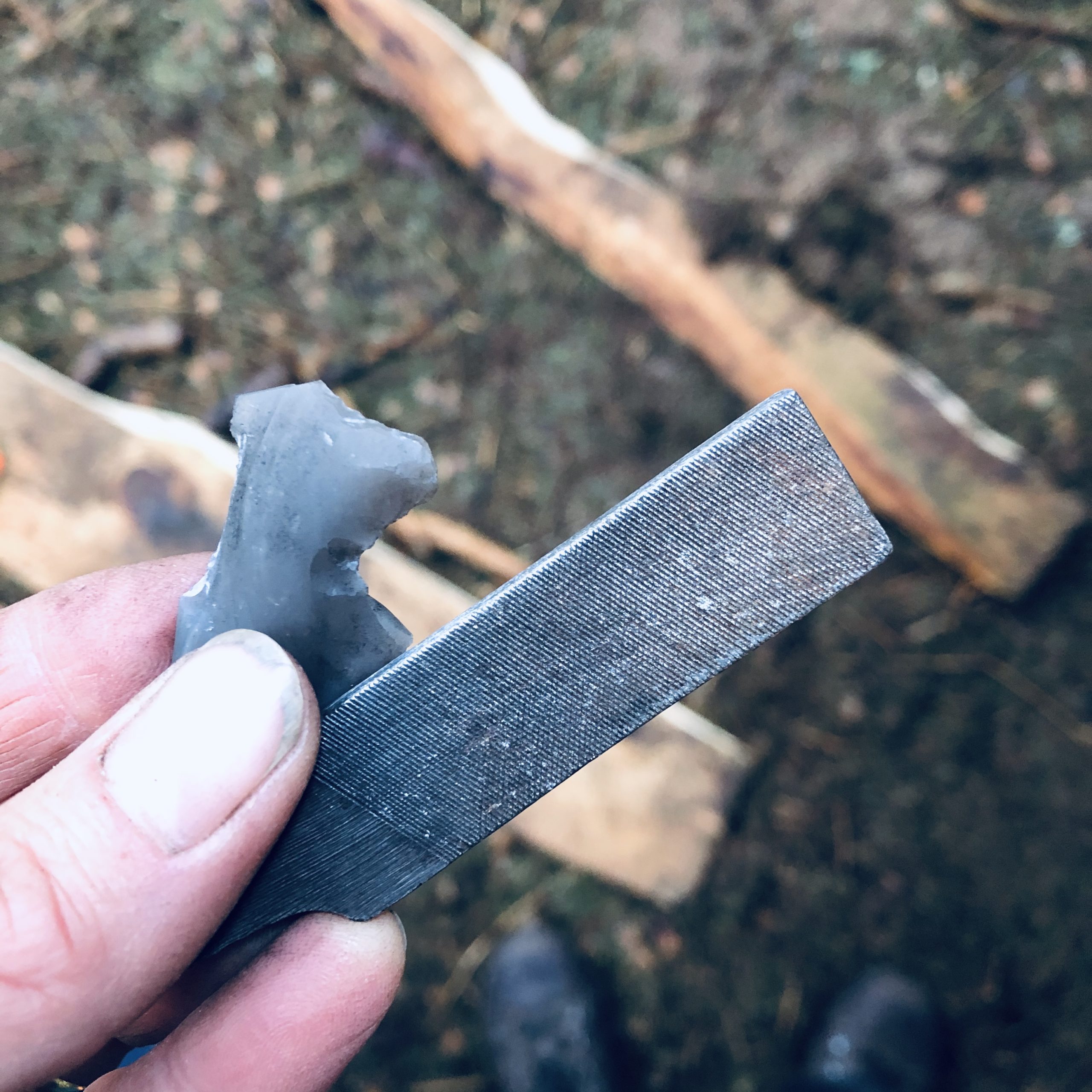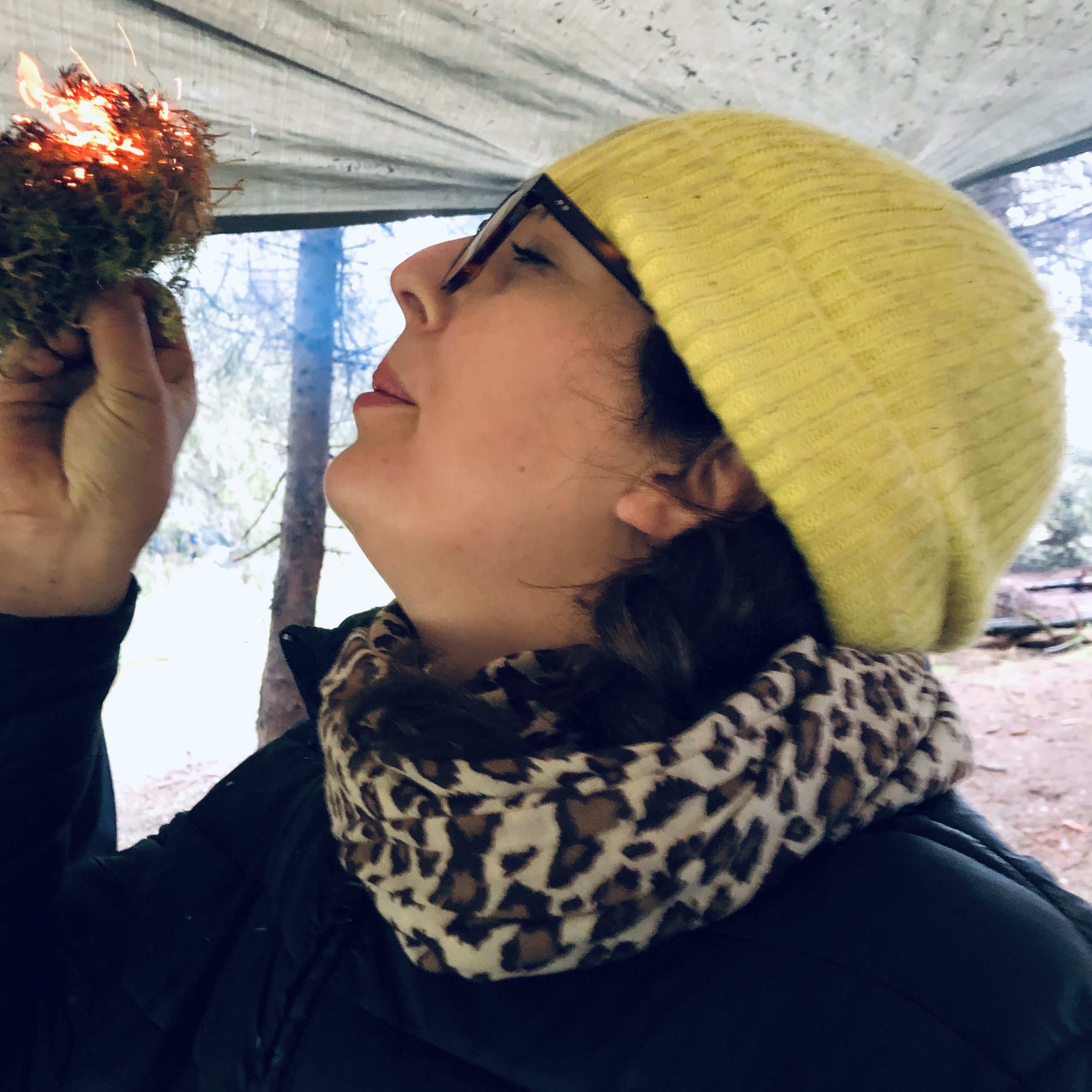 Ein Feuer zu machen, ist die zweitwichtigste Aufgabe. An dem Wochenende haben wir drei Methoden zum Feuer machen ganz ohne Feuerzeug erlernt: 1. mit Birkenrinde und Feuerstahl 2. mit Kienspan und Feuerstahl und zuletzt noch die „Mittelaltermethode“ mit Feuerstein, Eisen, Moos und Kohlenstoff. Marieke war tatsächlich sogar immer die Schnellste von allen – eine wahre Feuer-Königin!